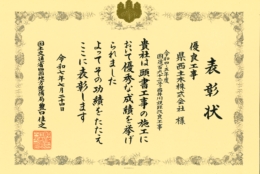 国土交通省 四国地方整備局より 令和6年度 工事成績優秀企業 に認定されました。